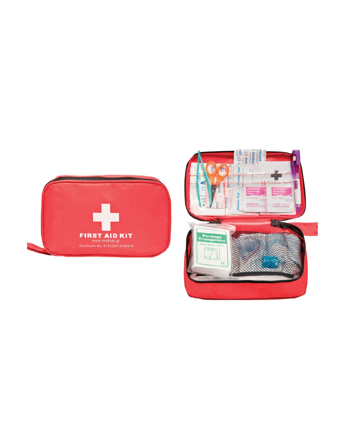 Η σύνθεση του φαρμακείου αυτοκινήτου είναι με προδιαγραφές DIN13164 και περιέχει: 1 αυτοκόλλητη ταινία 5mx2,5cm 14 τσιρότα 1 επίθεμα γάζας 6x8cm 2 επιθέματα γάζας 8x10cm 1 επίθεμα γάζας 10x12cm 2 μαντηλάκια καθαρισμού 1 επίθεμα εγκαυμάτων 60x80 cm 6 κομπρέσες 10x10cm 2 ελαστικοί επίδεσμοι 6x400cm 3 ελαστικοί επίδεσμοι 8x400cm 1 τριγωνικός επίδεσμος 96x96x136 1 ισοθερμική κουβέρτα 160x210 cm 1 ψαλίδι 2 ζευγάρια γάντια βυνιλίου 2 προστατευτικές μάσκες προσώπου οδηγίες πρώτων βοηθειών (στα ελληνικά) Ημερομηνία λήξης αποστειρωμένων προϊόντων: 2030-01